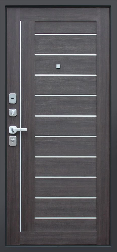 Надежная входная Дверь Дуэт орех рифленый премиум класса по цене 46 415 руб. Большая толщина стали защитит от проникновения в ваш дом, квартиру или коттедж. Используется очень качественная фурнитура: замки, цилиндры, ручки, защелки. Покрытие и отделка двери изготовлено под внимательным контролем производителя. Дверь имеет долгий срок службы и гарантию.