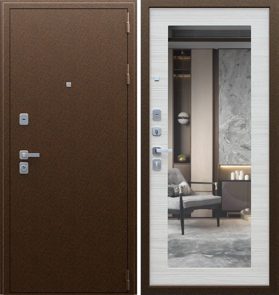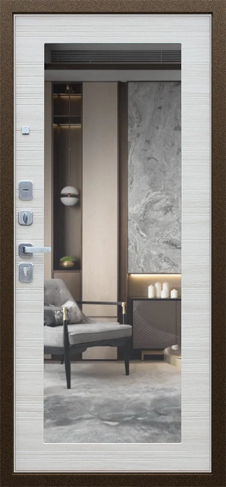 Надежная входная Дверь Спартак с зеркалом Акация Светлая Поперечная премиум класса по цене 37 915 руб. Большая толщина стали защитит от проникновения в ваш дом, квартиру или коттедж. Используется очень качественная фурнитура: замки, цилиндры, ручки, защелки. Покрытие и отделка двери изготовлено под внимательным контролем производителя. Дверь имеет долгий срок службы и гарантию.