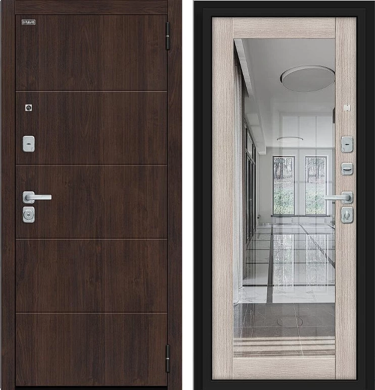 Надежная входная Дверь Браво Флэт/BChrome Almon/Cappuccino Melinga премиум класса по цене 44 115 руб. Большая толщина стали защитит от проникновения в ваш дом, квартиру или коттедж. Используется очень качественная фурнитура: замки, цилиндры, ручки, защелки. Покрытие и отделка двери изготовлено под внимательным контролем производителя. Дверь имеет долгий срок службы и гарантию.