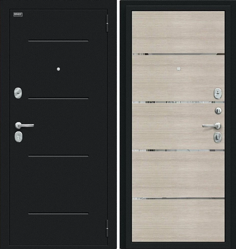 Надежная входная Дверь Браво Лайн Букле черное/Cappuccino Veralinga премиум класса по цене 31 485 руб. Большая толщина стали защитит от проникновения в ваш дом, квартиру или коттедж. Используется очень качественная фурнитура: замки, цилиндры, ручки, защелки. Покрытие и отделка двери изготовлено под внимательным контролем производителя. Дверь имеет долгий срок службы и гарантию.