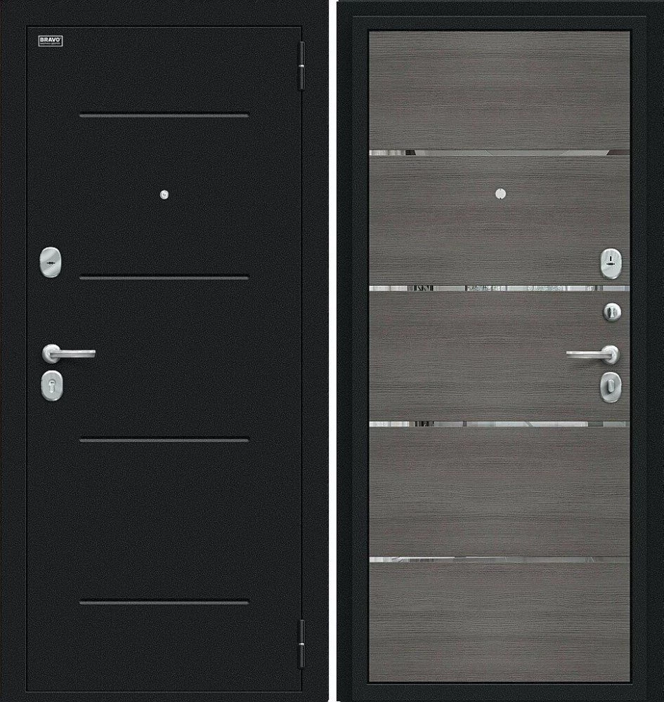 Надежная входная Дверь Браво Лайн Букле черное/Grey Melinga премиум класса по цене 31 485 руб. Большая толщина стали защитит от проникновения в ваш дом, квартиру или коттедж. Используется очень качественная фурнитура: замки, цилиндры, ручки, защелки. Покрытие и отделка двери изготовлено под внимательным контролем производителя. Дверь имеет долгий срок службы и гарантию.