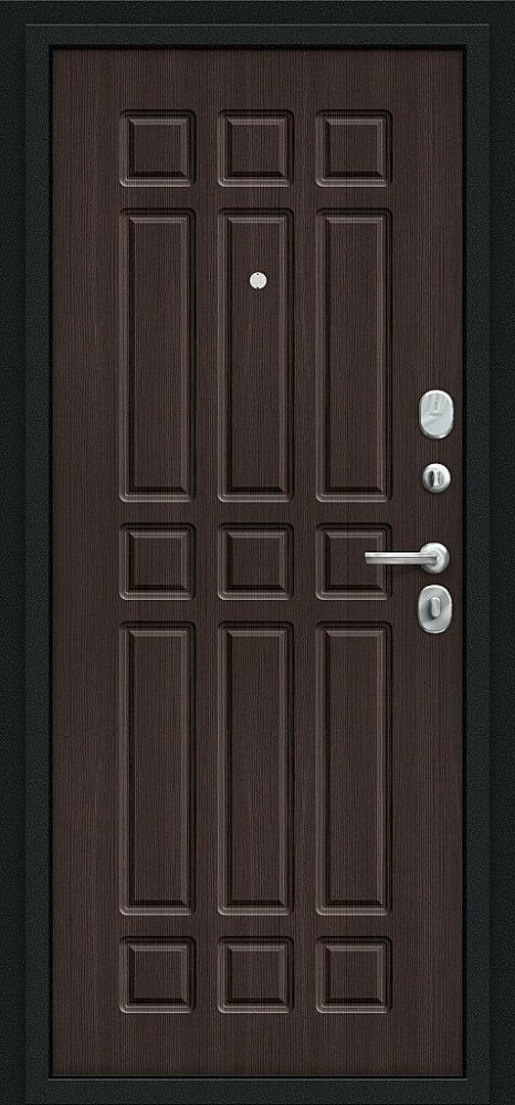 Надежная входная Дверь Браво Мило Букле черное/Wenge Veralinga премиум класса по цене 31 165 руб. Большая толщина стали защитит от проникновения в ваш дом, квартиру или коттедж. Используется очень качественная фурнитура: замки, цилиндры, ручки, защелки. Покрытие и отделка двери изготовлено под внимательным контролем производителя. Дверь имеет долгий срок службы и гарантию.