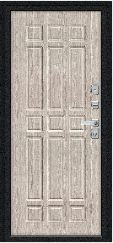 Надежная входная Дверь Браво Мило МФ/BChrome Букле черное/Cappuccino Melinga премиум класса по цене 34 915 руб. Большая толщина стали защитит от проникновения в ваш дом, квартиру или коттедж. Используется очень качественная фурнитура: замки, цилиндры, ручки, защелки. Покрытие и отделка двери изготовлено под внимательным контролем производителя. Дверь имеет долгий срок службы и гарантию.
