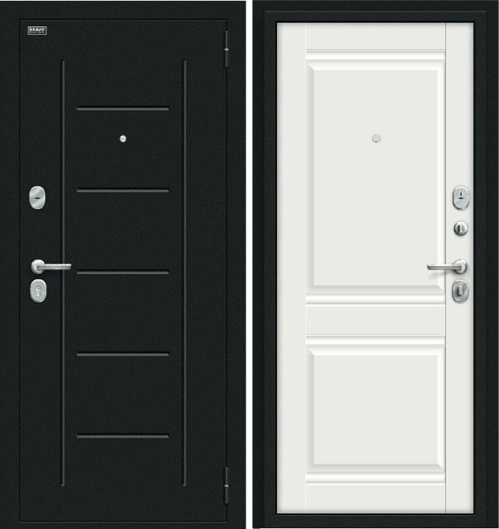 Надежная входная Дверь Браво Некст Kale Букле черное/Off-white премиум класса по цене 38 065 руб. Большая толщина стали защитит от проникновения в ваш дом, квартиру или коттедж. Используется очень качественная фурнитура: замки, цилиндры, ручки, защелки. Покрытие и отделка двери изготовлено под внимательным контролем производителя. Дверь имеет долгий срок службы и гарантию.