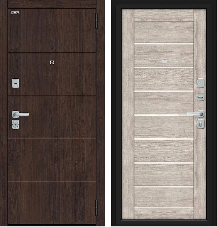 Надежная входная Дверь Браво Прайм/BChrome Almon/Cappuccino Melinga премиум класса по цене 41 265 руб. Большая толщина стали защитит от проникновения в ваш дом, квартиру или коттедж. Используется очень качественная фурнитура: замки, цилиндры, ручки, защелки. Покрытие и отделка двери изготовлено под внимательным контролем производителя. Дверь имеет долгий срок службы и гарантию.