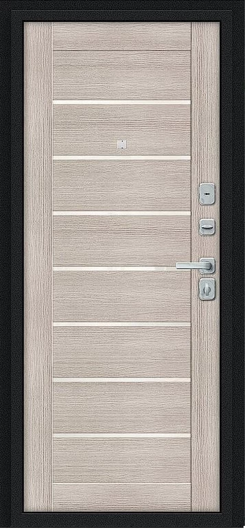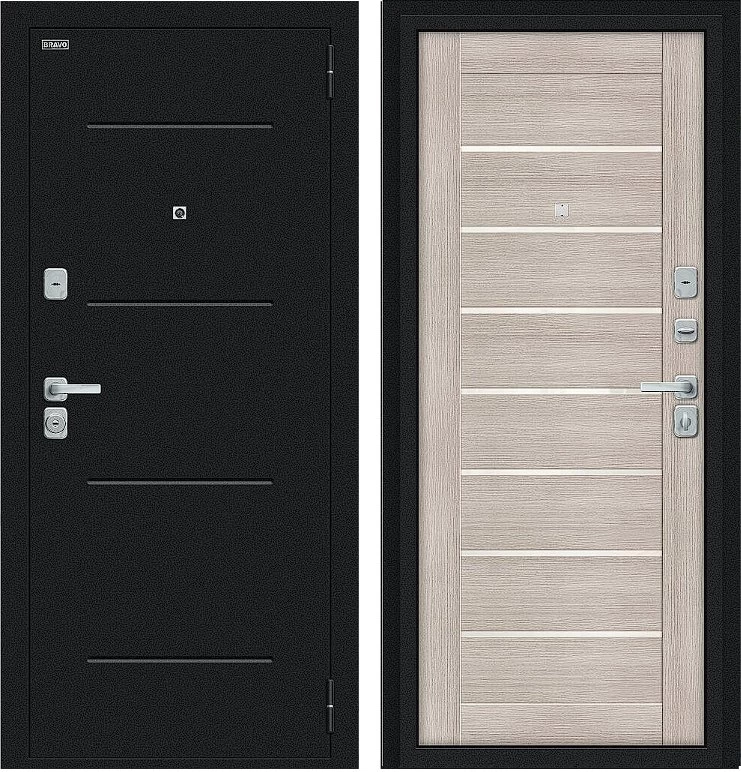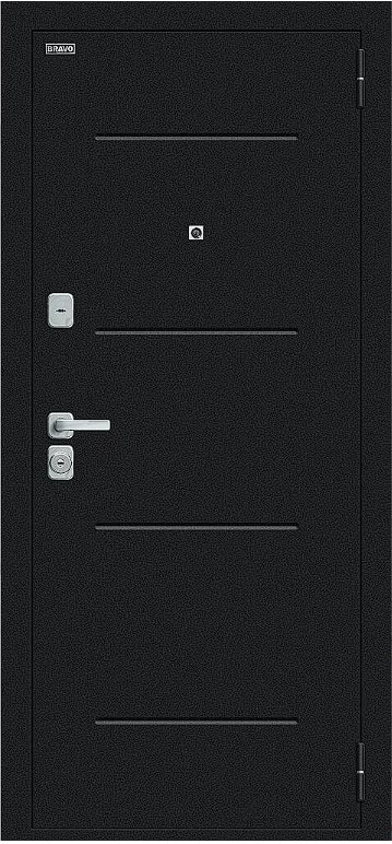 Надежная входная Дверь Браво Техно/BChrome Букле черное/Cappuccino Melinga премиум класса по цене 36 415 руб. Большая толщина стали защитит от проникновения в ваш дом, квартиру или коттедж. Используется очень качественная фурнитура: замки, цилиндры, ручки, защелки. Покрытие и отделка двери изготовлено под внимательным контролем производителя. Дверь имеет долгий срок службы и гарантию.
