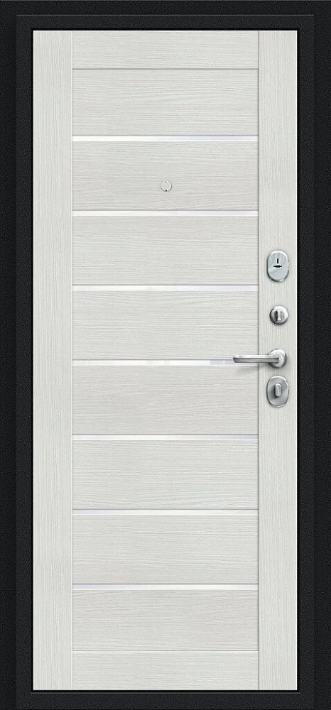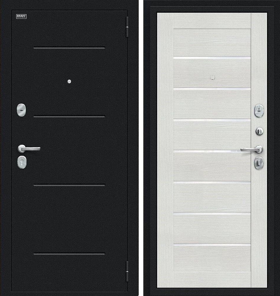 Надежная входная Дверь Браво Техно Букле черное/Bianco Veralinga премиум класса по цене 32 765 руб. Большая толщина стали защитит от проникновения в ваш дом, квартиру или коттедж. Используется очень качественная фурнитура: замки, цилиндры, ручки, защелки. Покрытие и отделка двери изготовлено под внимательным контролем производителя. Дверь имеет долгий срок службы и гарантию.