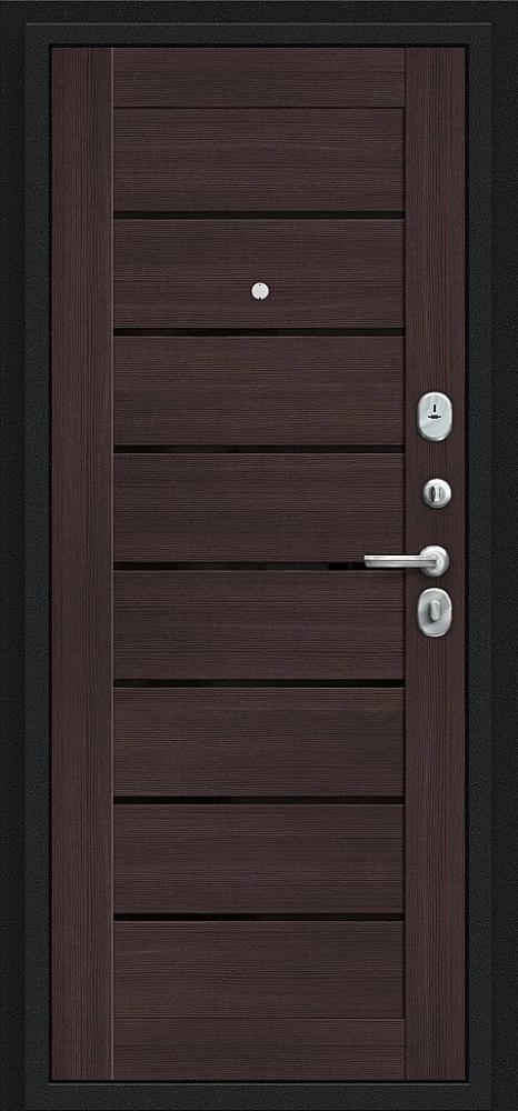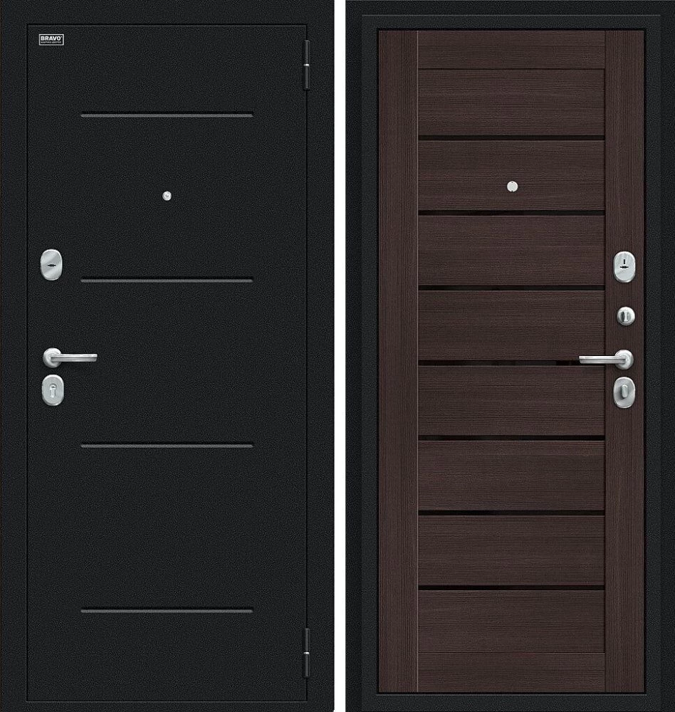 Надежная входная Дверь Браво Техно Букле черное/Wenge Veralinga премиум класса по цене 32 765 руб. Большая толщина стали защитит от проникновения в ваш дом, квартиру или коттедж. Используется очень качественная фурнитура: замки, цилиндры, ручки, защелки. Покрытие и отделка двери изготовлено под внимательным контролем производителя. Дверь имеет долгий срок службы и гарантию.