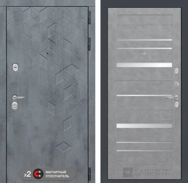 Дизайнерская входная Дверь Бетон класса Люкс с несколькими листами стали, звукоизоляцией и теплоизоляцией. Утепленный короб и полотно защитят от сквозняков и шумов. Модель не только надежная, комфортная, защищенная и высочайшего качества, но и очень красивая! Будет отлично сочетаться с интерьером дома, квартиры или офиса. Сейчас действует выгодное предложение по цене: 55 515 руб.