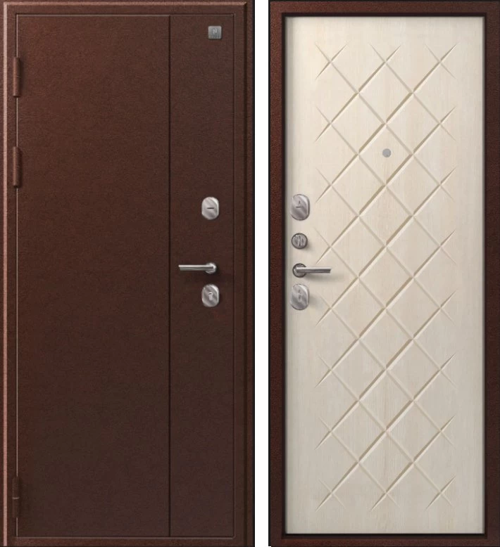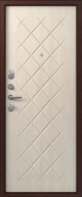 Надежная входная Дверь V-02 медь антик - седой дуб премиум класса по цене 38 265 руб. Большая толщина стали защитит от проникновения в ваш дом, квартиру или коттедж. Используется очень качественная фурнитура: замки, цилиндры, ручки, защелки. Покрытие и отделка двери изготовлено под внимательным контролем производителя. Дверь имеет долгий срок службы и гарантию.