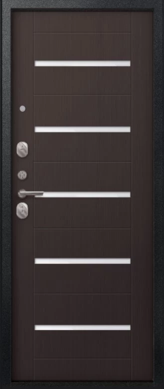 Надежная входная Дверь V-05 Черный муар - Темная лиственница премиум класса по цене 44 215 руб. Большая толщина стали защитит от проникновения в ваш дом, квартиру или коттедж. Используется очень качественная фурнитура: замки, цилиндры, ручки, защелки. Покрытие и отделка двери изготовлено под внимательным контролем производителя. Дверь имеет долгий срок службы и гарантию.