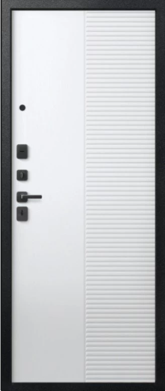 Надежная входная Дверь V-18 Черный муар + Кашемир графит - Кашемир Белый премиум класса по цене 48 165 руб. Большая толщина стали защитит от проникновения в ваш дом, квартиру или коттедж. Используется очень качественная фурнитура: замки, цилиндры, ручки, защелки. Покрытие и отделка двери изготовлено под внимательным контролем производителя. Дверь имеет долгий срок службы и гарантию.